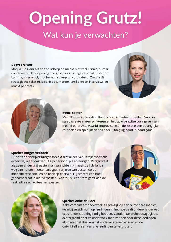 25 september is het dan eindelijk zover, de opening van Grutz! We gaan het natuurlijk Grutz vieren, met workshops, sprekers, muziek en een hapje en drankje. Maar de viering is niet compleet zonder gasten.